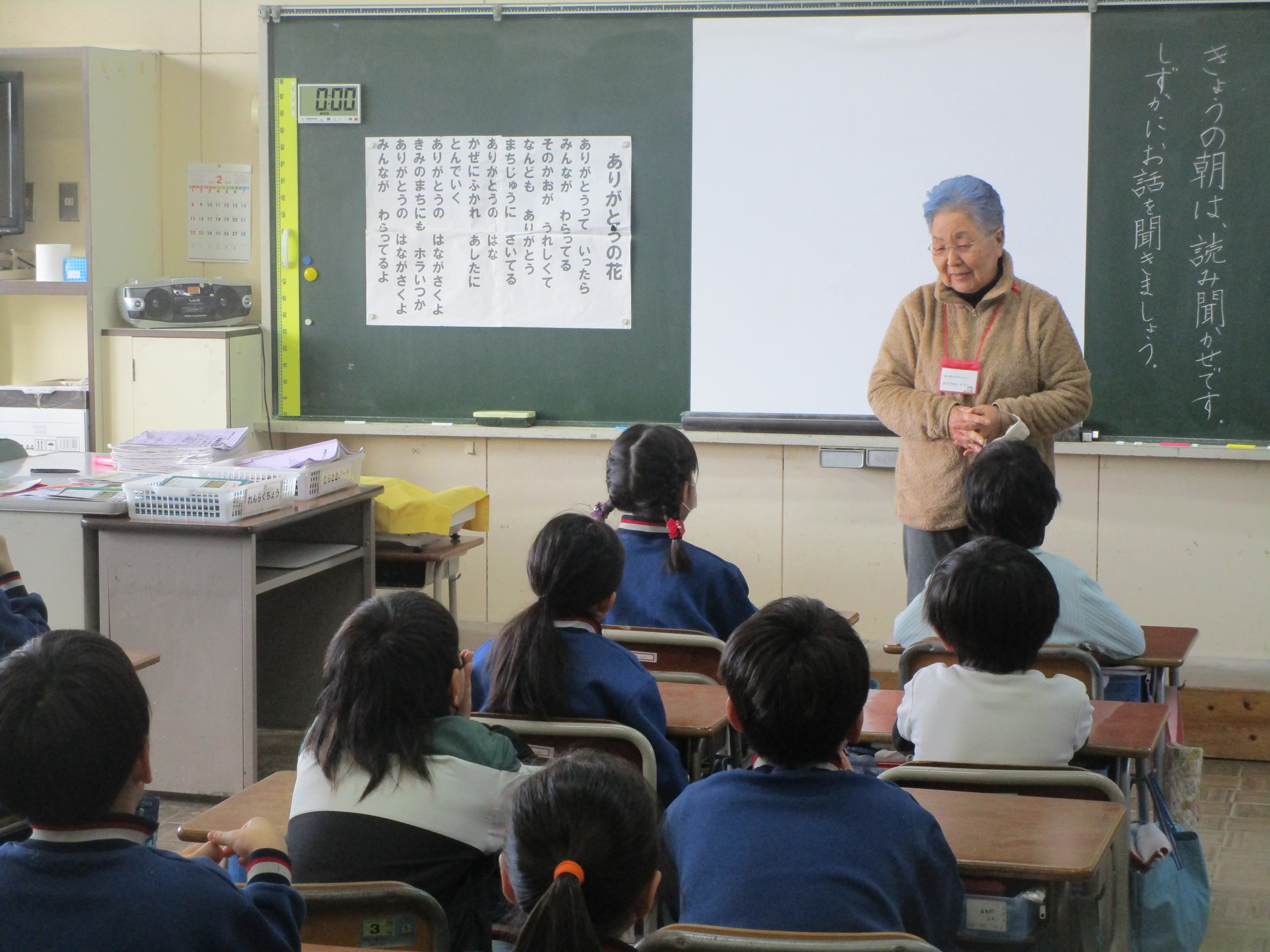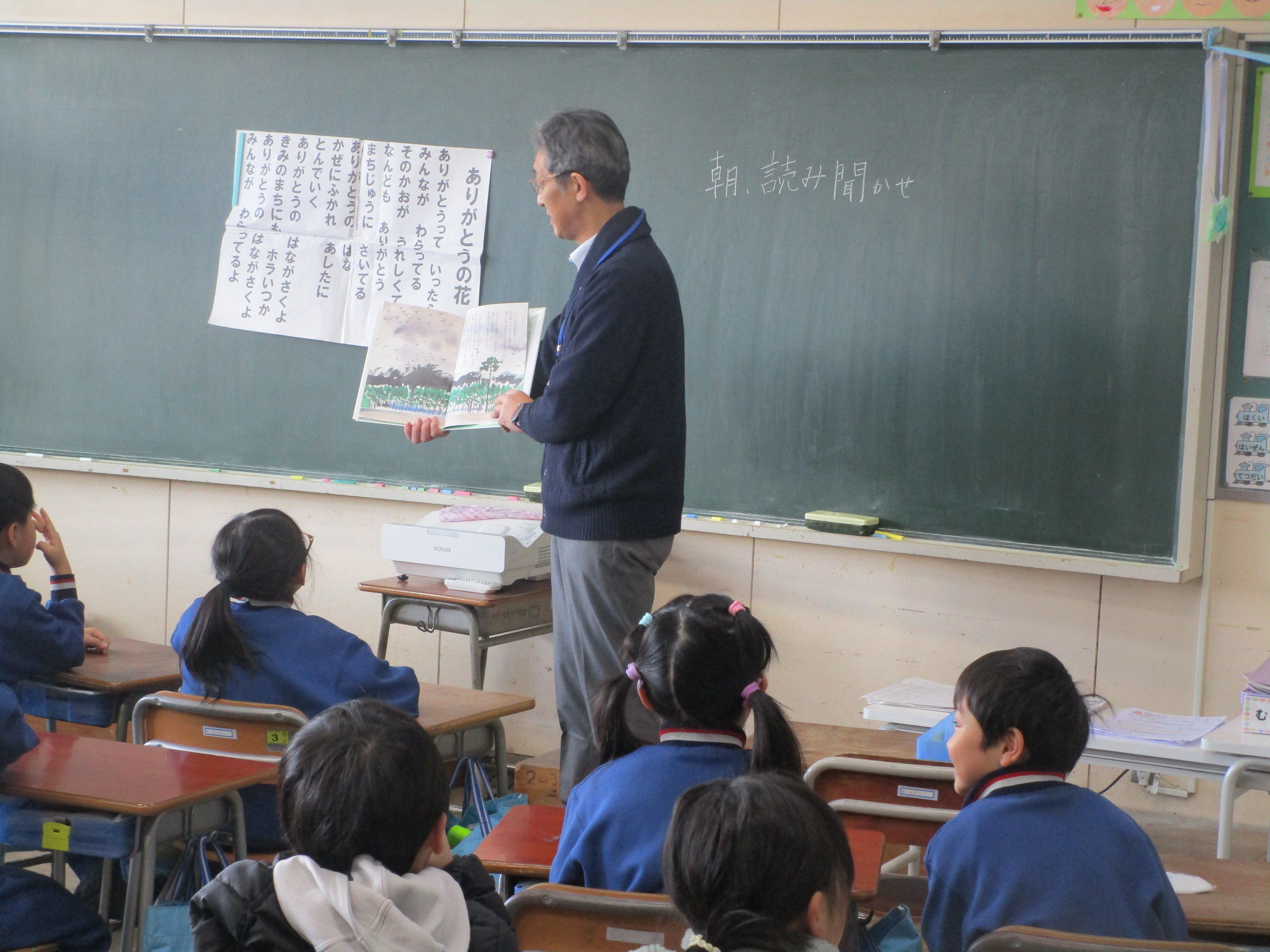 読み聞かせボランティアの方々が来校され,1,2年生の各教室で,本の読み聞かせをしてくださいました。