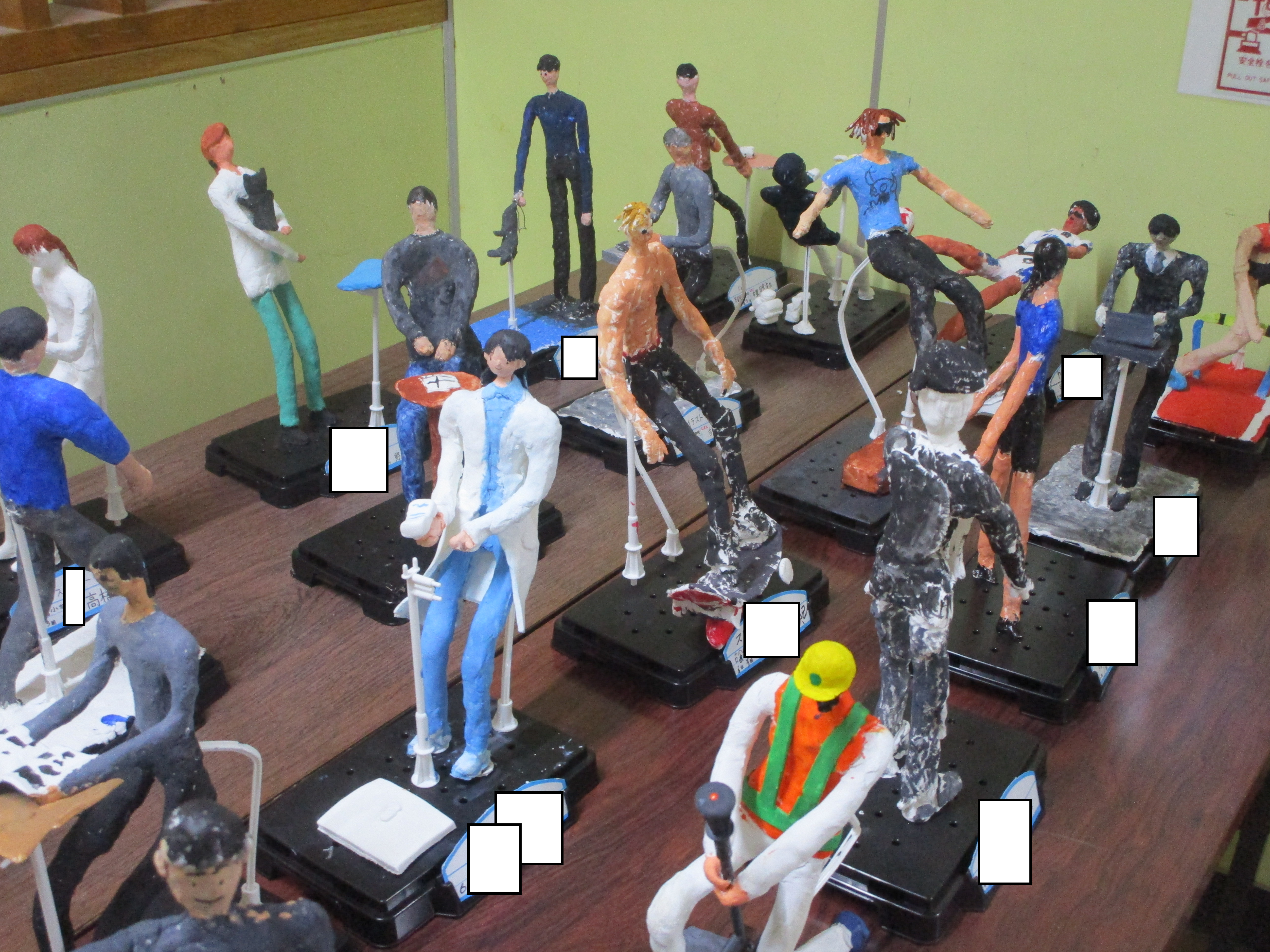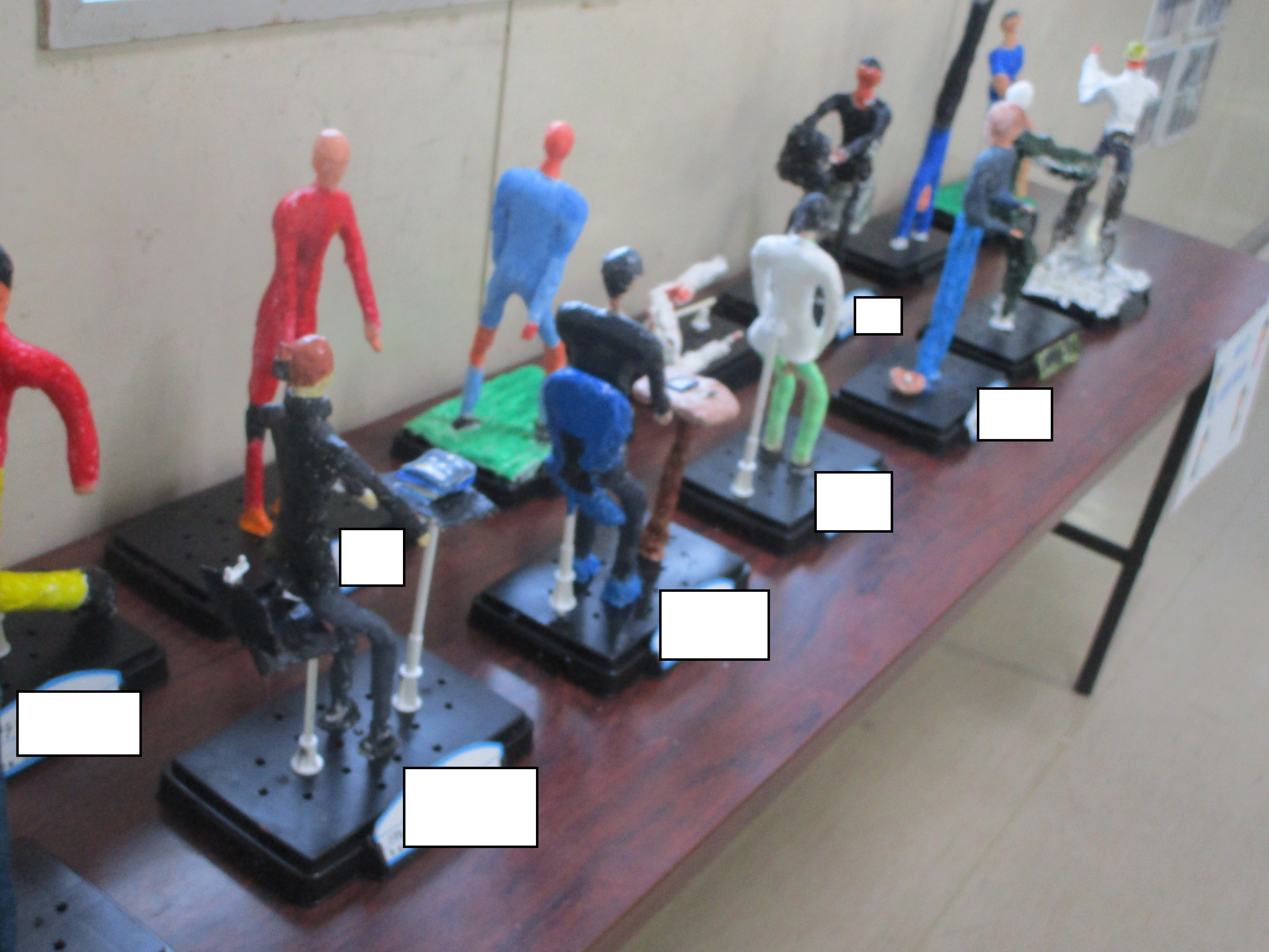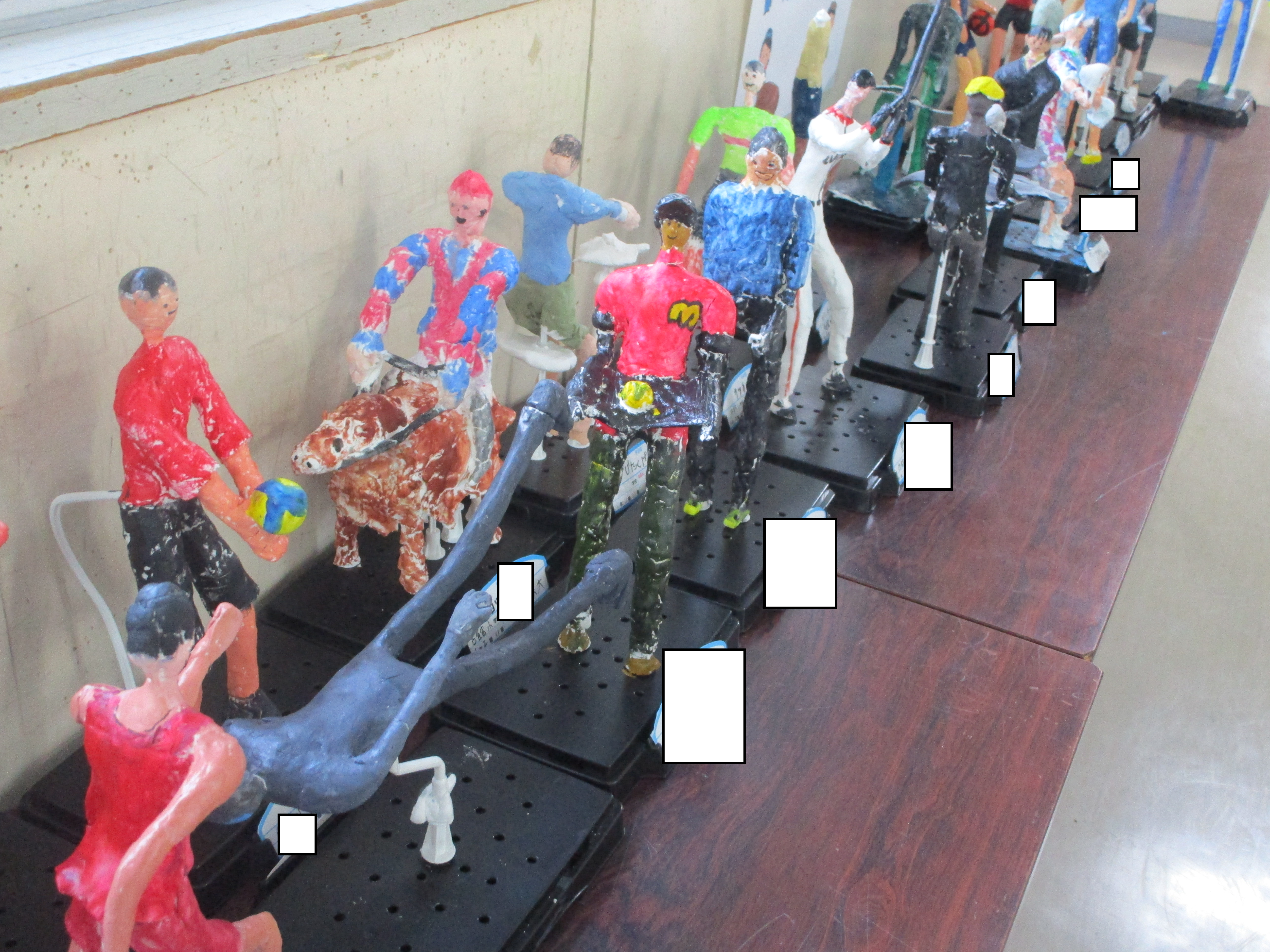 学習のあしあと part2 6年生が図画工作で取り組んだ作品が展示されています。 「将来の自分」をテーマに,白い粘土を材料にして,将来の自分の姿をイメージしながら作り,絵の具で色を塗ってしあげたものです。