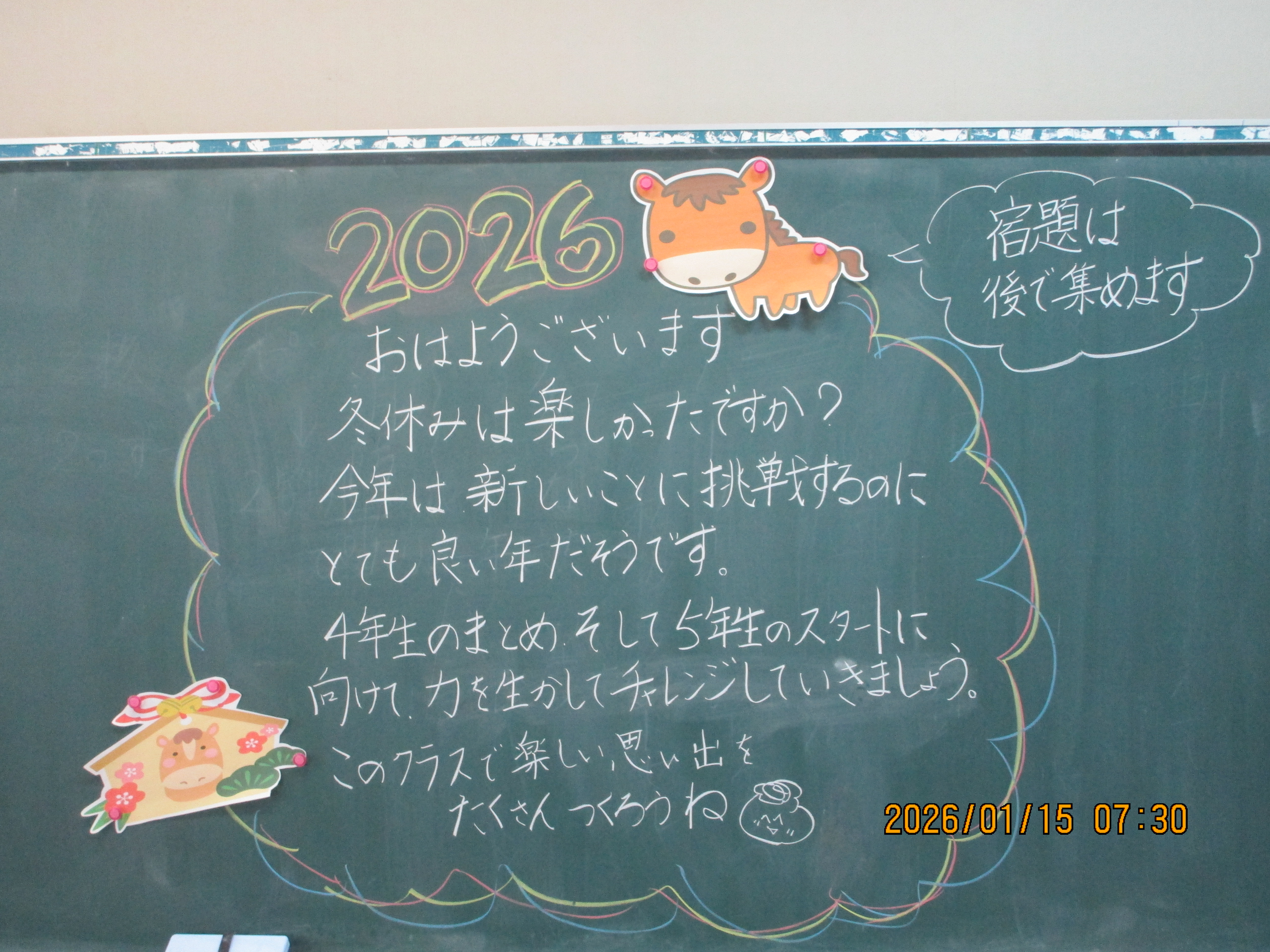 担任の先生からの part2 3学期の学校生活がスタートした昨日,黒板には,担任の先生からのメッセージがかいてありました。 part1に引き続き,4,5,6年生の黒板にかかれていたメッセージの一部を紹介します。