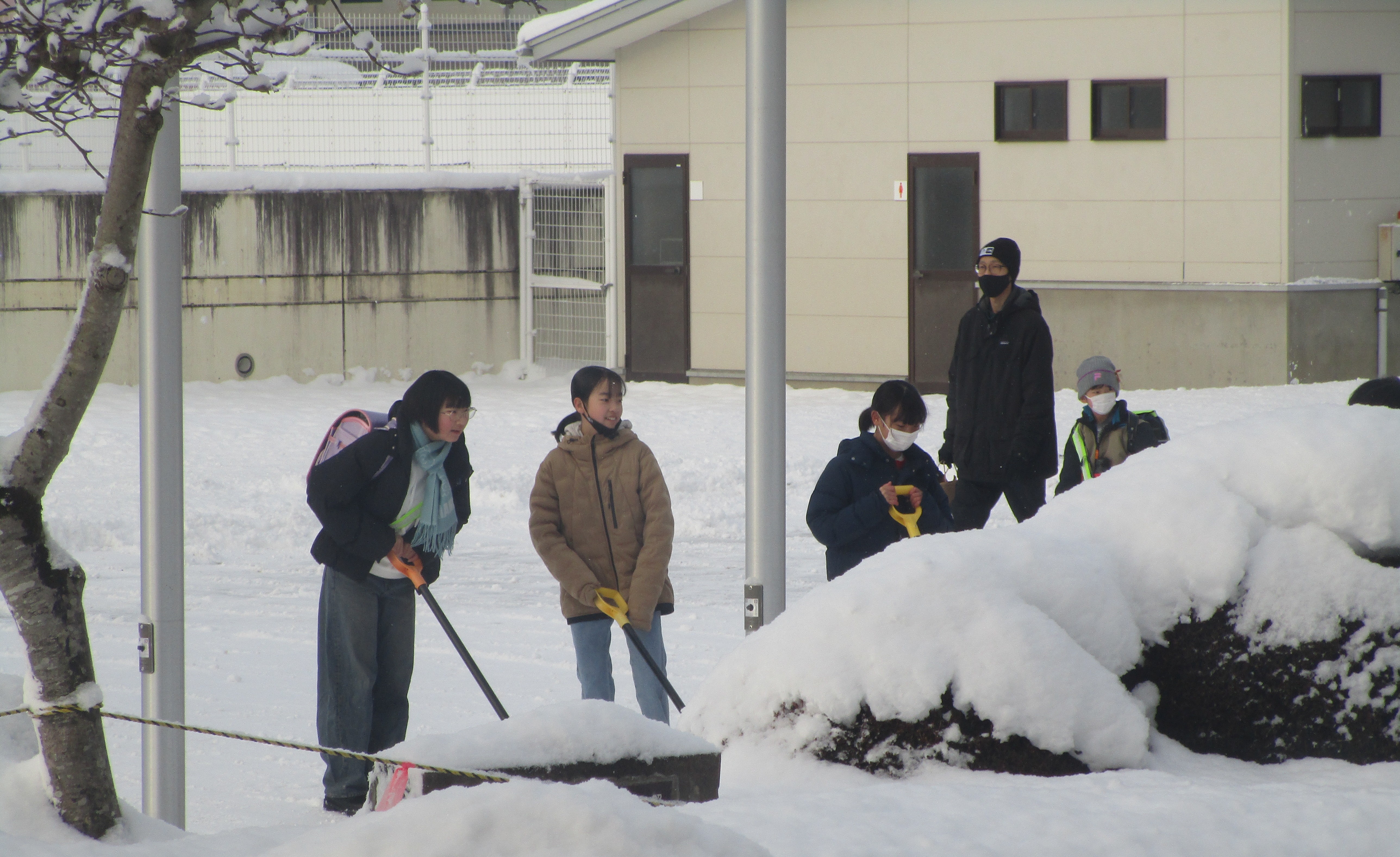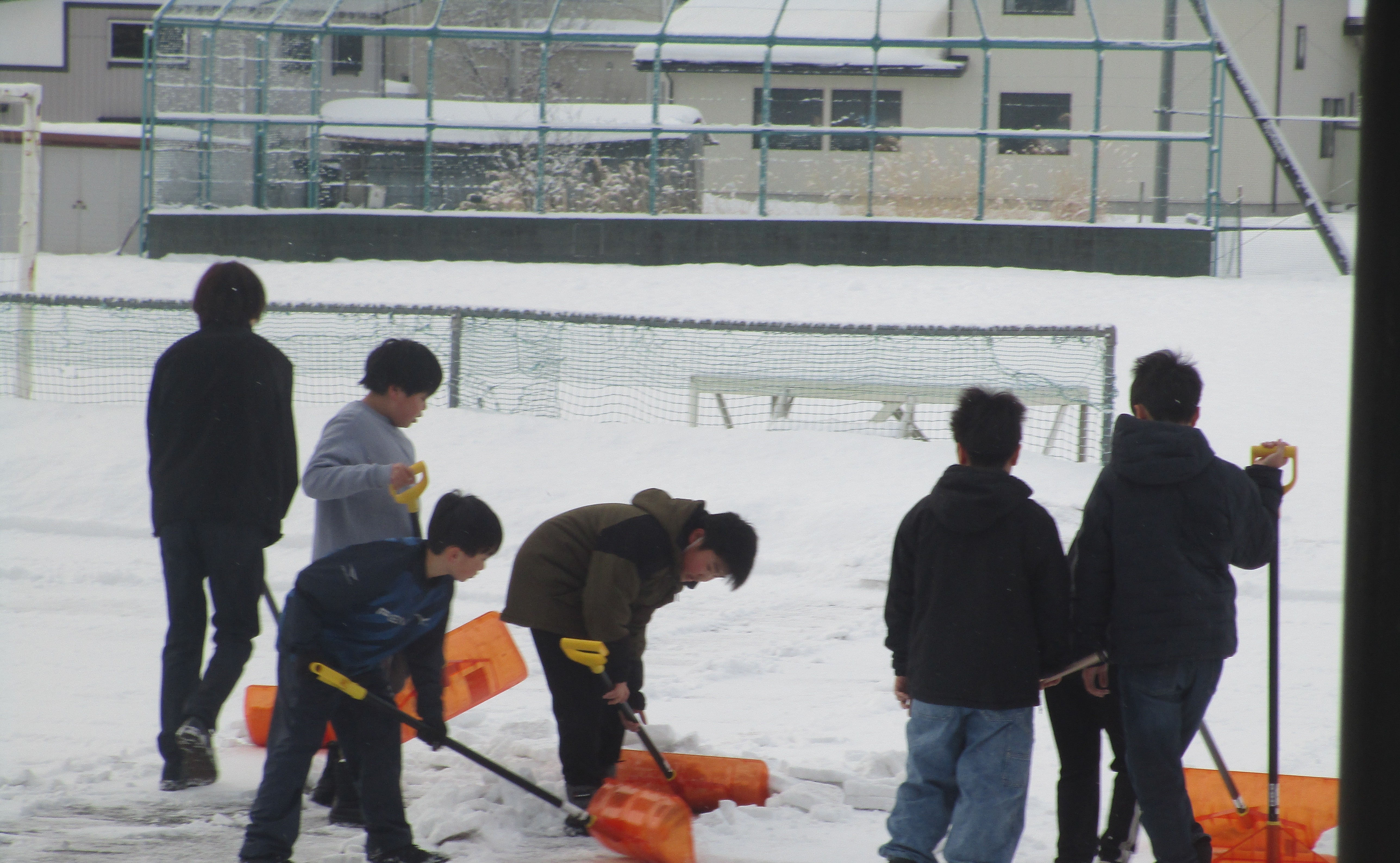 6年生と5年生の子どもたちは,この様子を見て,ボランティアで,登校後に雪かきを進んでしていました。歩きやすくなるようにと,協力しながら,ていねいに雪かきをしていました。