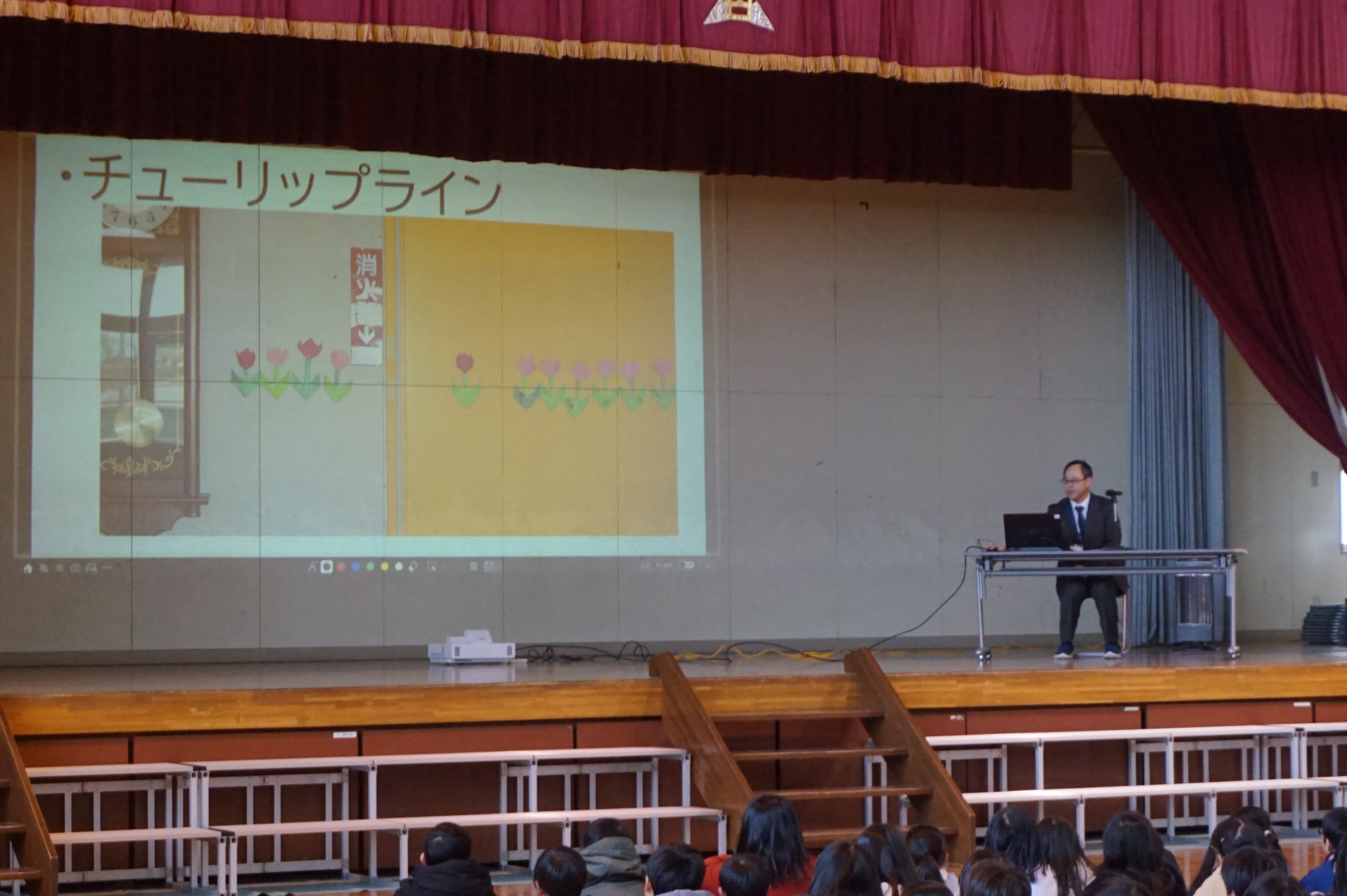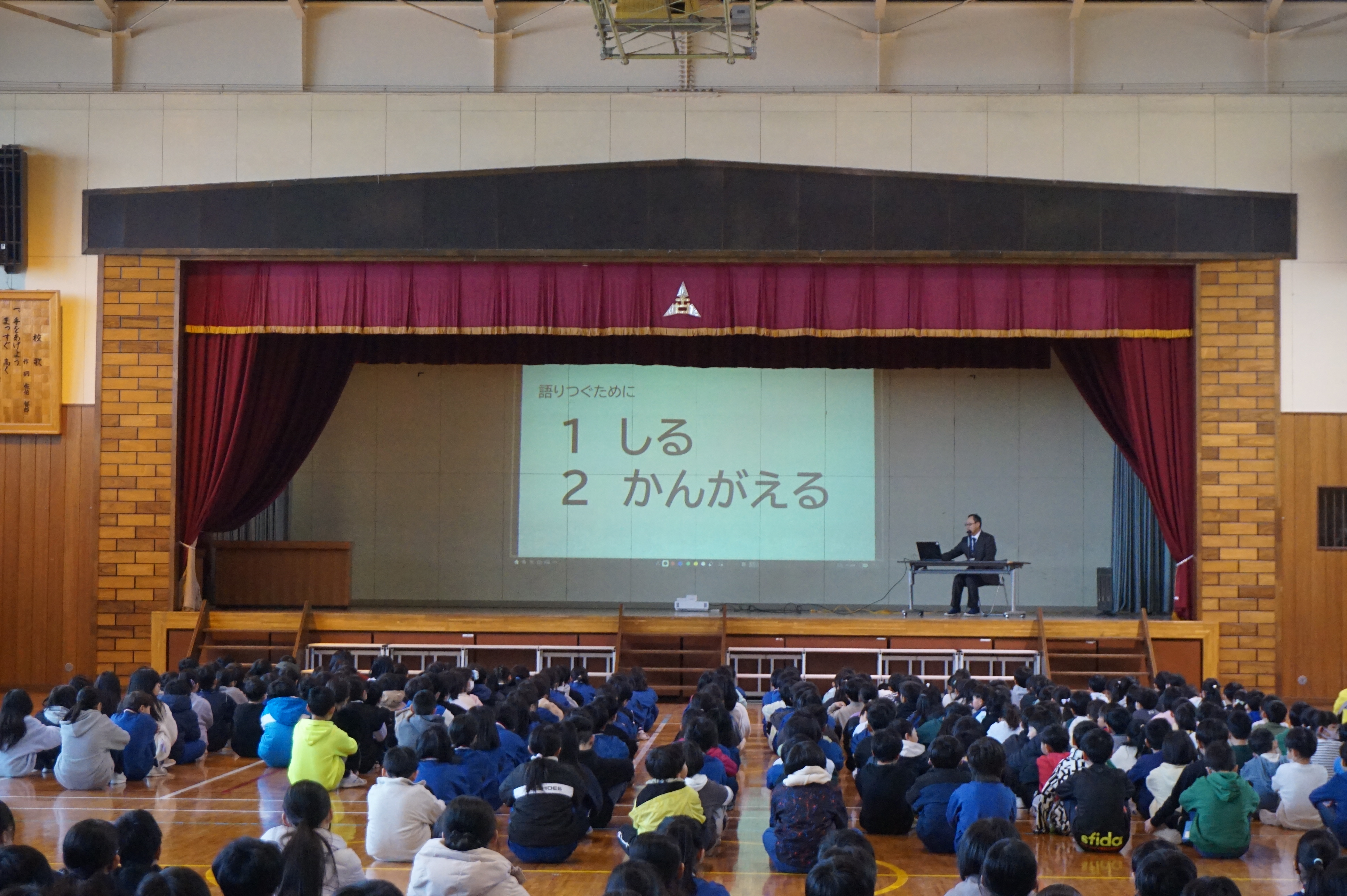 子どもたちは,被害の様子にとてもおどろきながらも,最後まで,真剣な表情で話をきくことができました。このあと,教室に戻り,子どもたちは,お話をきいて考えたことやこれから大切にしていきたいことなどを自分自身でも改めて考えました。