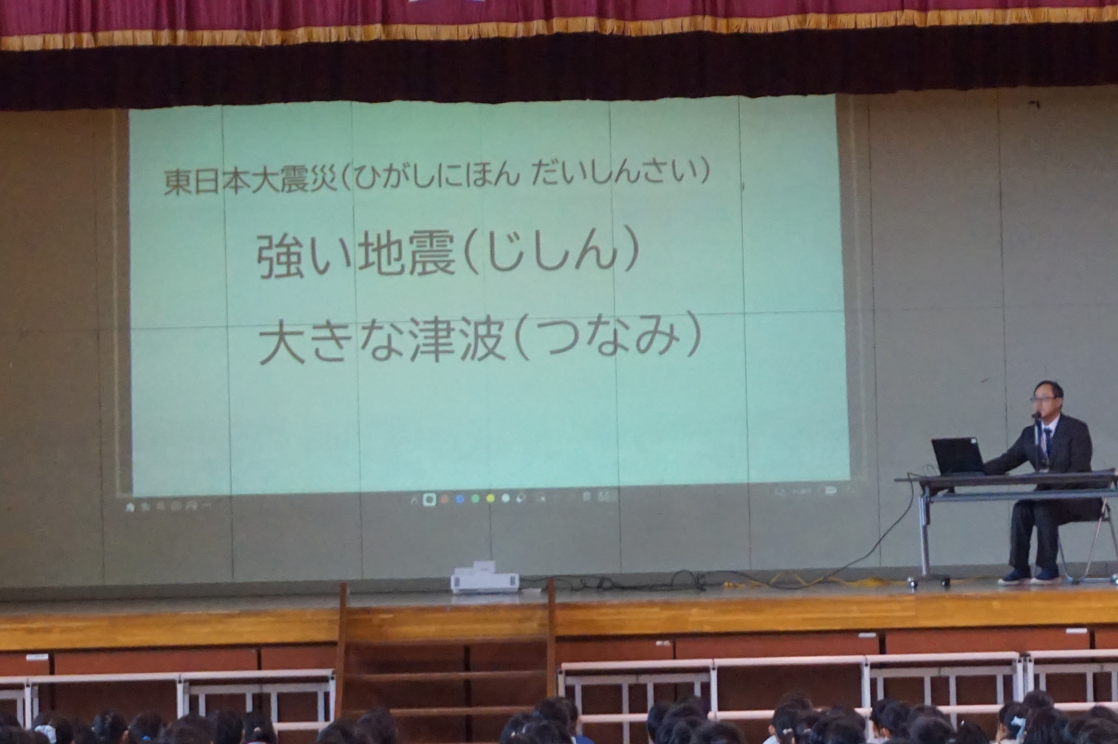 東日本大震災から15年がたちました。古館小学校では,朝活動の時間に,全校の子どもたちが体育館に集まり,震災を語り継ぐ日として,校長先生のお話をききました。