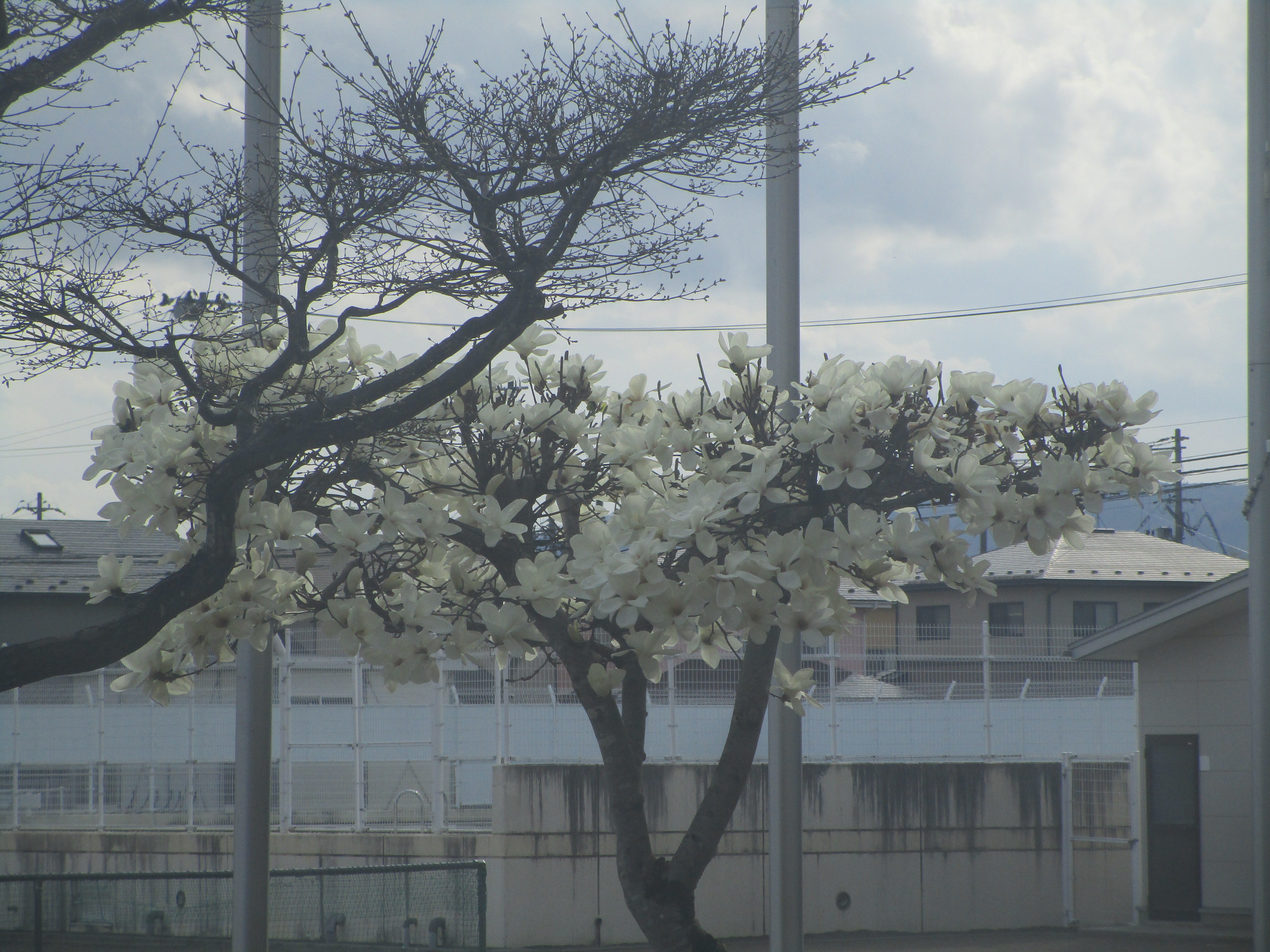 間もなく始まる新たな学年のスタートを祝福するかのように,岩石園に植えられている木が,白い花を咲かせています。