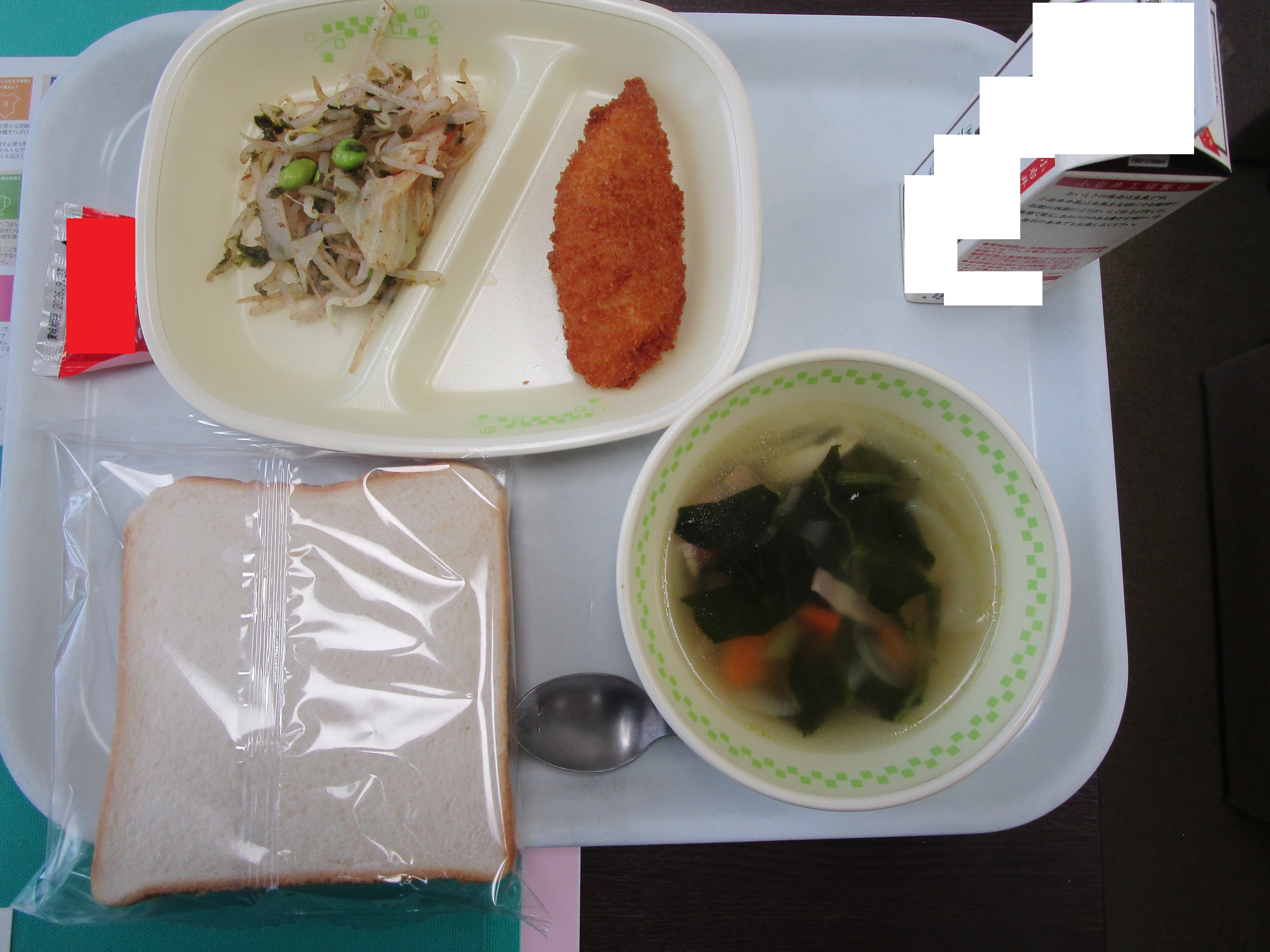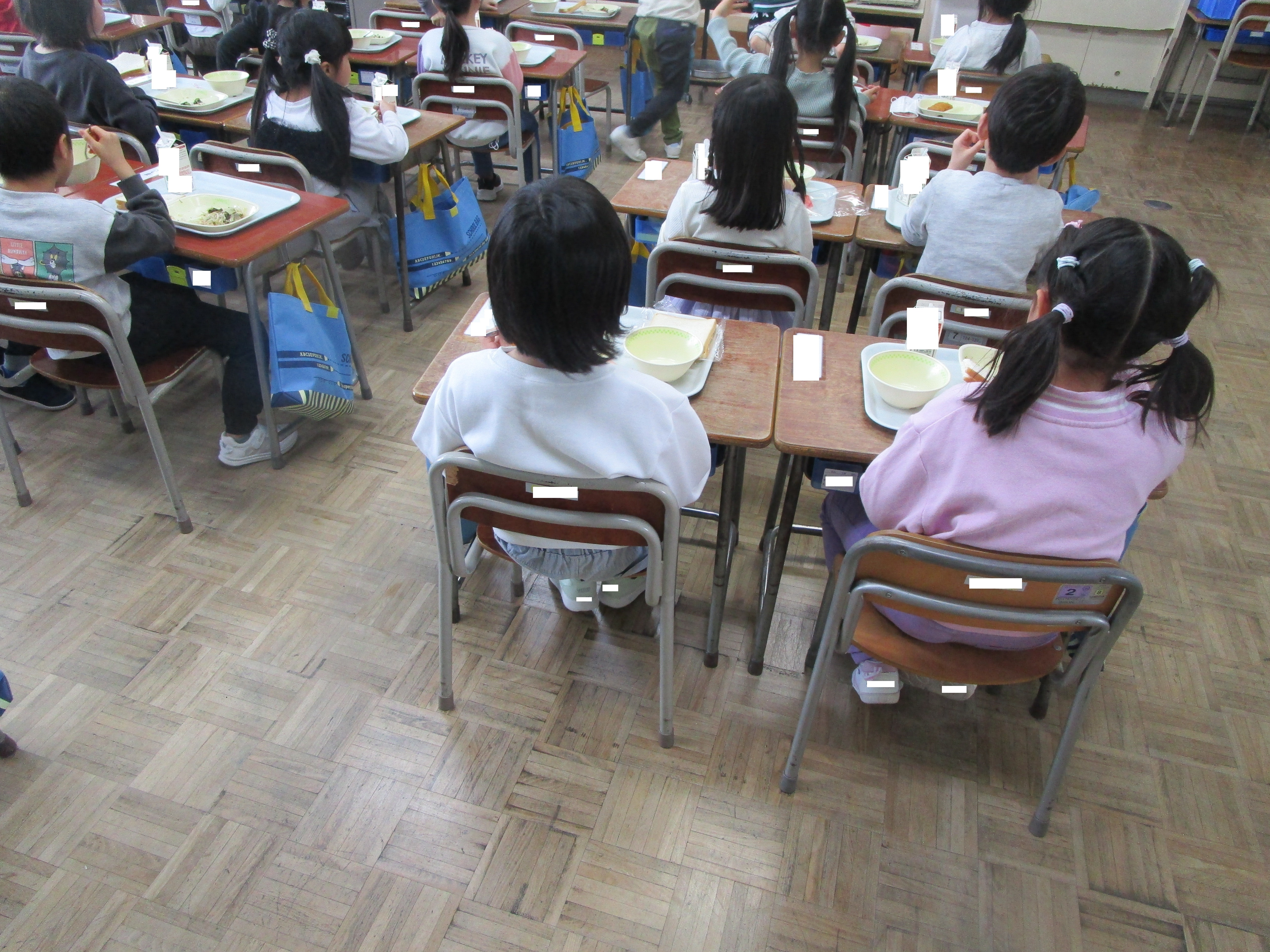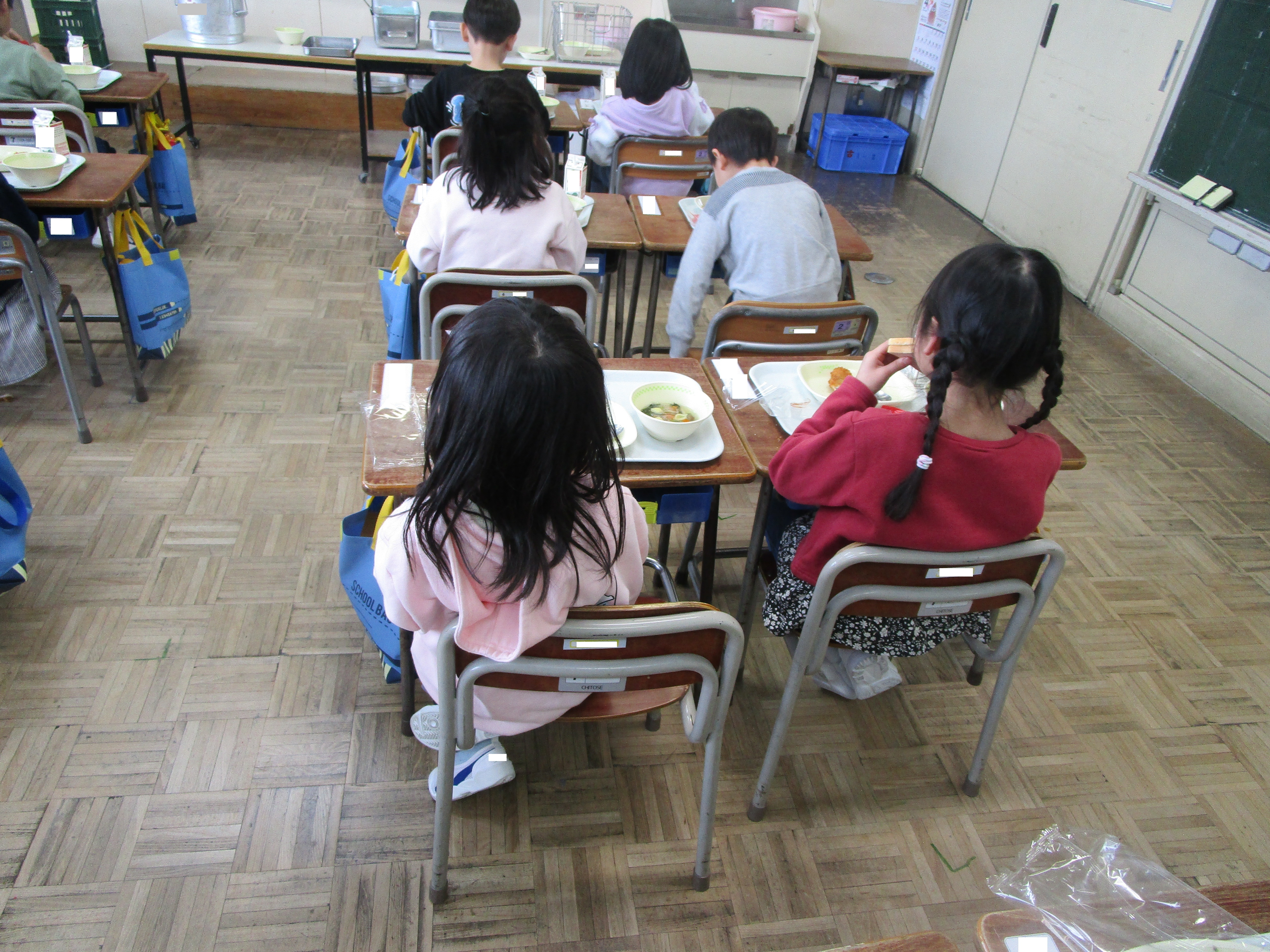 初めての 今日は,今年度,最初の給食の日でした。 1年生は,小学校に入学して初めての給食を食べました。白身魚フライヤ海の香りサラダなどのメニューを味わいながら食べていました。「おいしい。」という声が子どもたちからたくさん聞こえ,教室に笑顔が広がっていました。